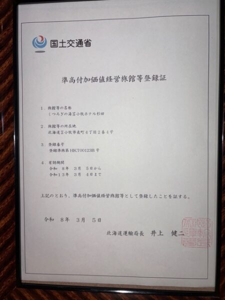国から「準高付加価値経営旅館」に認定されました。